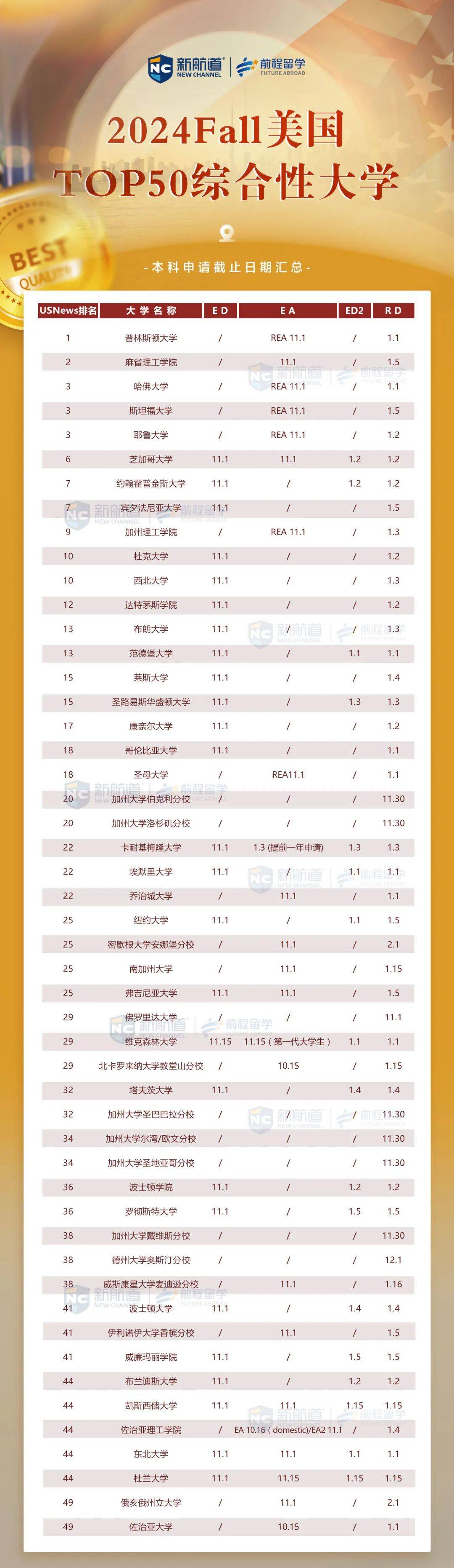 为了帮助申请季的同学们合理安排时间,汇总了美国Top50大学&Top30文理学院EA/ED/RD申请截止日期供大家参考,各位有需要的同学和家长们记得收藏转发。