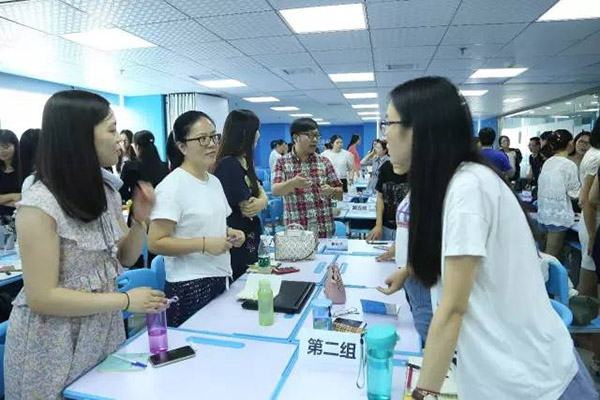 研讨会引用了麦克米伦官方培训师Jake所传授的能力英语教学理念——“4C”理念(critical thinking/批判性思维、collaboration/合作、creativity/创造、communication/交流)。如何在课上穿插批判性思维、鼓励合作、创造与交流?老师们分组进行了尝试与讨论,全真演练互动课堂,将“4C”理念渗透到教学的每一个环节。