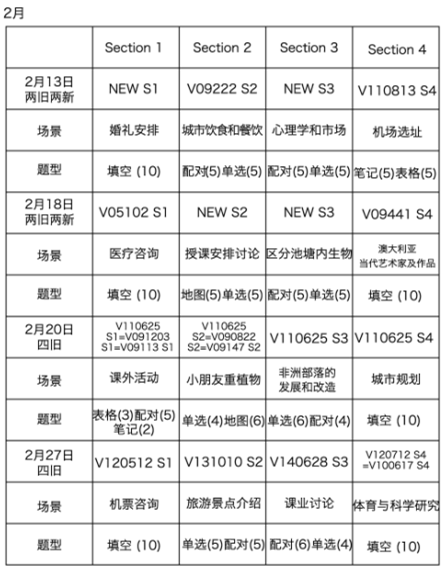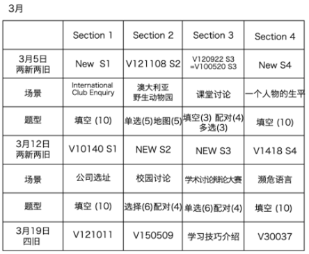 Section 2场景主要考察旅游,课外活动,动物,建筑介绍场景。主要题型为选择+配对,单选+地图,填空这几种情况。地图题作为每月必考题型要引起重视。在平时练习中多加强地图题方位词及关键信息精听。该部分选择题较容易,平时训练多抓住转折词与同义替换训练。