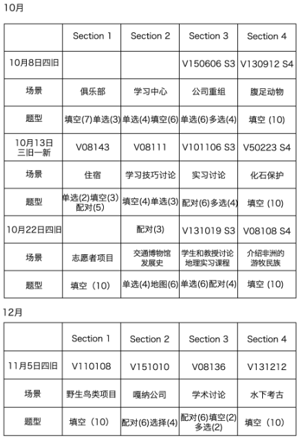 Section 3是学术场景: 除了论文讨论还有能源、公司、动物类课程话题。主要题型为单选、填空、多选及配对。单选题在这个部分是难度非常大的一个题型,出现大量同义替换、矛盾、歧义选项。同学们在平时的练习过程中除了体会此部分题型中可以运用的技巧外,应多加强题干信息后听力理解能力的训练,多听、积累与总结真题同义替换是一个非常好的方法。