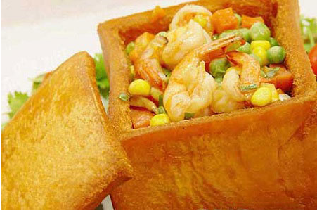 The coffin burger is Chang Tien-chien’s (张天见) favorite snack. The 19-year-old boy grew up in Kaohsiung and is a chemical engineering major at Tsinghua University now. Just like its unusual name, it is an innovative and unique dish. A loaf of thick, deep-fried bread is cut open at the top like a box. Then it is filled with a stew of pork, shrimp and intestines. The toppings include chopped potatoes, carrots and corn. “The meat is quite greasy, but in combination with the fried, dry bread it makes for a refreshing meal,” Chang says.
