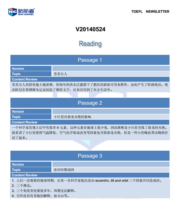 2014年5月24日的托福考试已经结束,想要看看自己考得怎么样?又不知道如何下手?北京新航道“托福梦之队”师资,时间为你点评5月24日考试,解读托福听力、口语、阅读、写作考试情况。我们一起来看本次托福阅读机经内容: