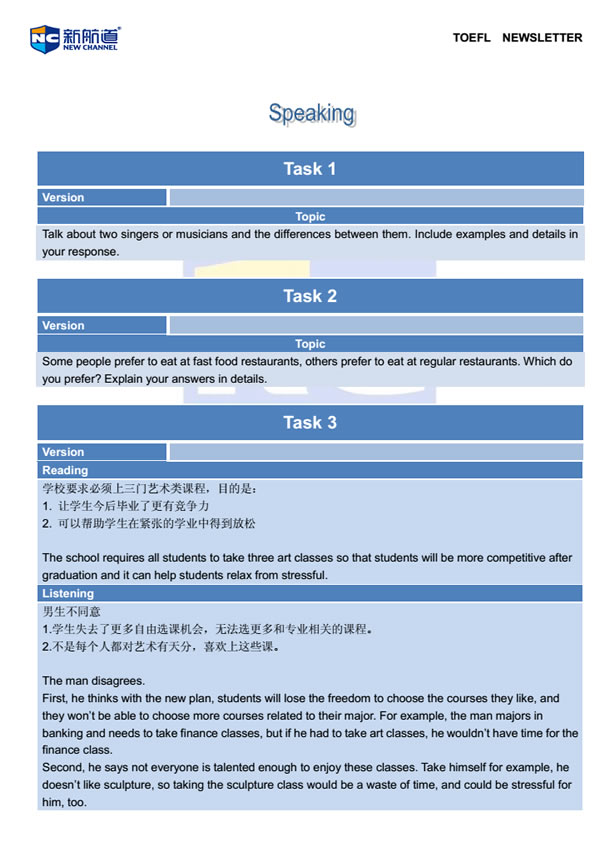 2014年5月25日的托福考试已经结束,想要看看自己考得怎么样?又不知道如何下手?北京新航道“托福梦之队”师资,时间为你点评5月25日考试,解读托福听力、口语、阅读、写作考试情况。我们一起来看本次托福口语机经内容: