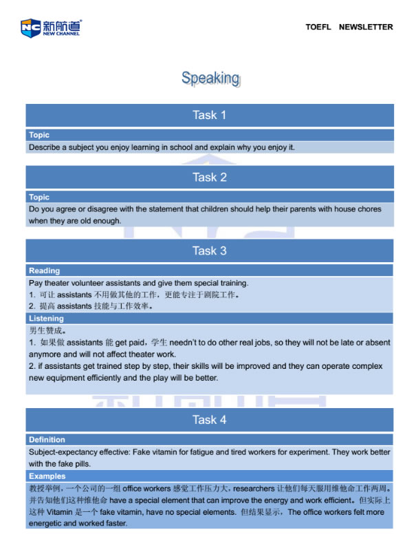 2014年6月21日的托福考试已经结束,想要看看自己考得怎么样?又不知道如何下手?北京新航道“托福梦之队”师资,时间为你点评6月21日考试,解读托福听力、口语、阅读、写作考试情况。我们一起来看本次托福口语机经内容: