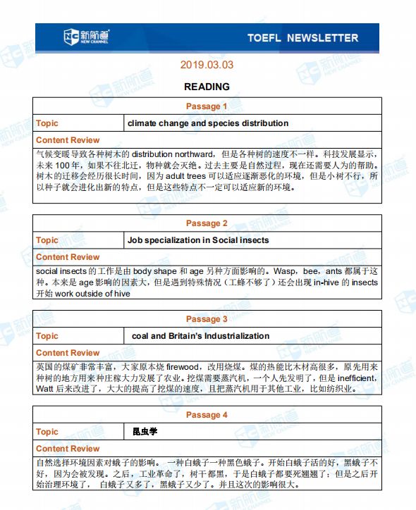本场考试的阅读部分,主要考了昆虫学、历史学、动物学和植物学等方面的内容,整体不是很难。