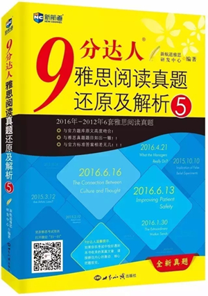 由“新航道雅思培训研发中心 ”编著的《9分达人雅思阅读真题还原及解析5》即将上市,本书不仅收录了2012-2016年6套完整雅思阅读真题,还结合题目与原文对每一道阅读题目进行了详细的解释。内容清晰明了,通俗易懂。解析中汇聚了最有效的解题思路、方法和技巧,帮助大家从技术层面把握好雅思考试节奏。《9分达人》阅读系列丛书更是多次命中雅思原题,是名副其实的押题宝典!