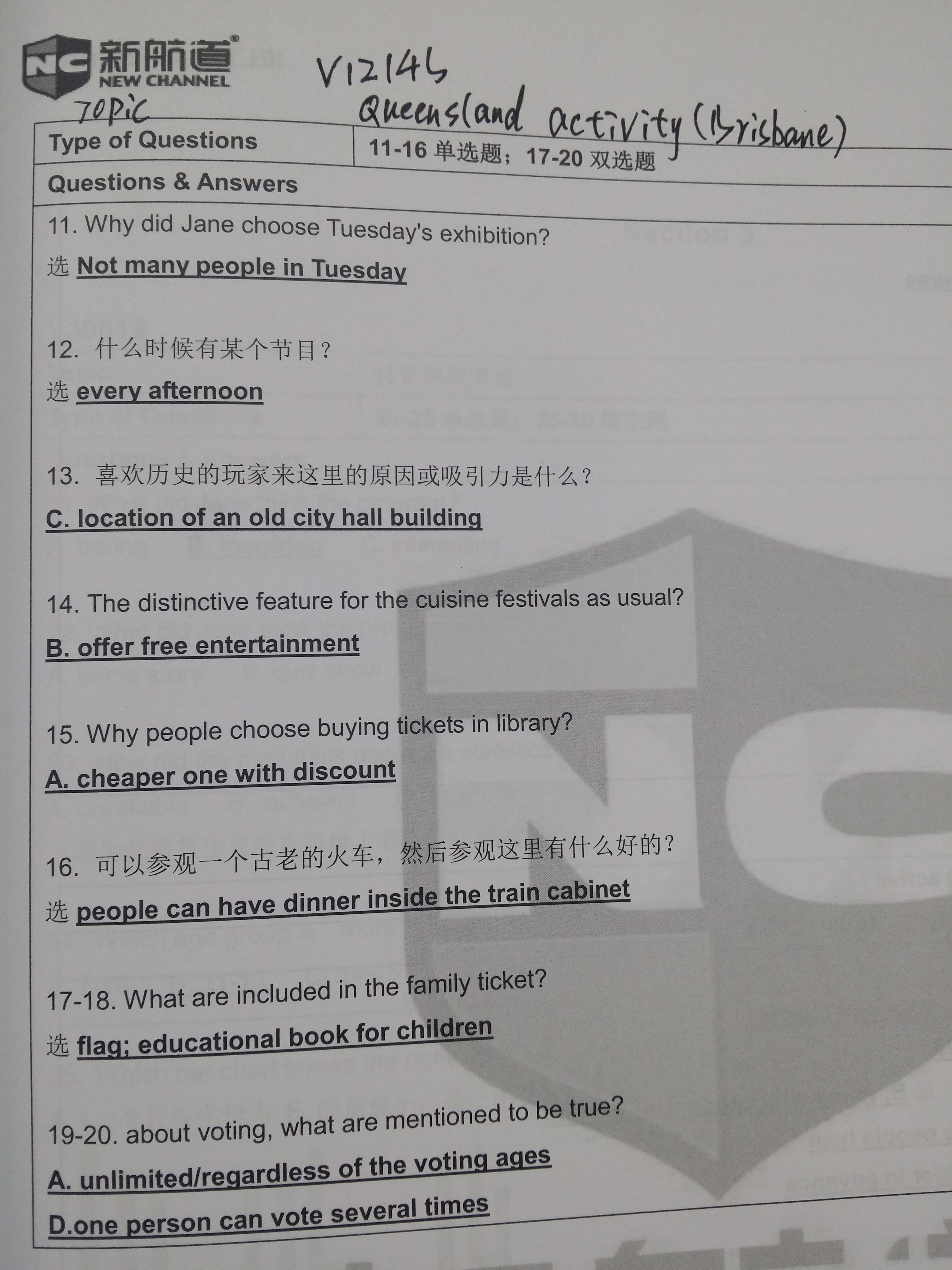 雅思听力机经版本号Section2原文阅读 V12128 V12126