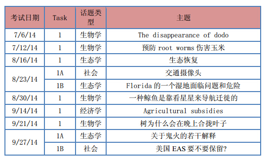 2014年第三季度总共举行了8场托福考试,含9月21日为加场。而因其中8月23日及9月27日均出现了A/B卷,所以总共涉及到10套考题。现就这10套考题进行系统的梳理,希望能对各位考生在接下来的复习中有所帮助和启发。