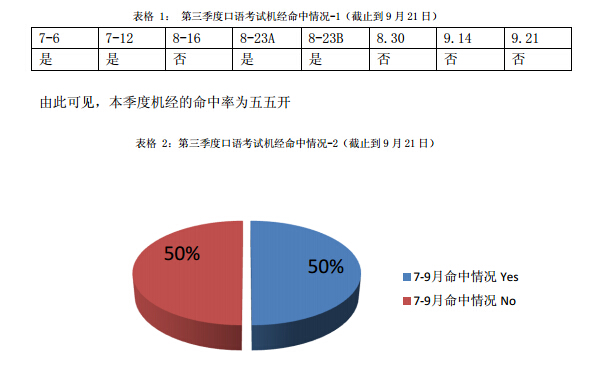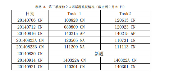 我们首先来回顾一下独立任务,这两道题也是考生们在使用机经时最为关注的口语话题。下面的表格展示了第三季度独立口语话题的重复规律。