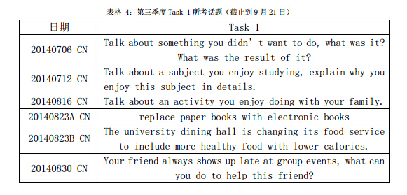(1) 独立任务题:下述表格为第三季度题所考到的话题列表:
