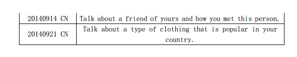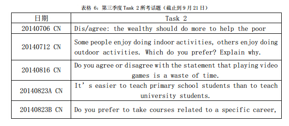 (2) 独立任务第二题:下述表格为第三季度第二题所考到的话题列表: