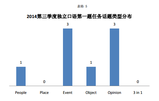 转眼间2014年已经过去了四分之三,本年度三个季度的托福考试也已落下帷幕,相比于季度意料之中的变化、第二季度的波澜不惊,第三个季度的的托福考试可谓是情理之中却又意料之外。下面本文就带大家一起来回顾总结2014年第三季度托福口语考试。