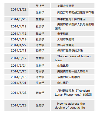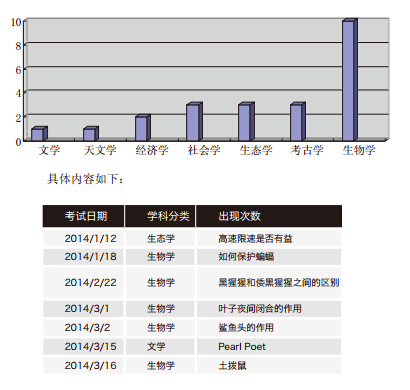 对于综合写作部分,考古学考了3 次、生态学3 次、社会学3 次、经济学2 次、文学和天文学各出现了1 次,其余10 篇都在围绕动植物的生物类话题展开讨论。